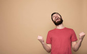 Portret młodego mężczyzny ze zszokowanym wyrazem twarzy