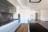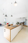 Zdjęcie "Minimalistyczny, nowoczesną kuchnią z wbudowane szafy" może być wykorzystywane do celów osobistych i komercyjnych zgodnie z warunkami zakupionej licencji Royalty-free. Obraz jest dostępny do pobrania w jakości wysokiej rozdzielczości do 5760x3840.