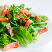 Zdjęcie "Sałatka z łososiem ryby i warzywa" może być wykorzystywane do celów osobistych i komercyjnych zgodnie z warunkami zakupionej licencji Royalty-free. Obraz jest dostępny do pobrania w jakości wysokiej rozdzielczości do 5760x3840.