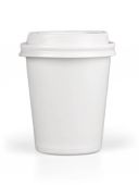 Pusty papier filiżanka kawy izolat na białym tle makieta