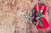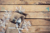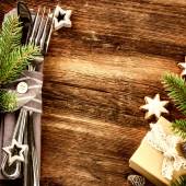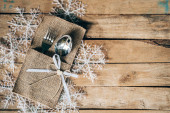 Boże Narodzenie tabeli miejsce ustawienia i sreber, płatki śniegu na tabl