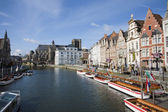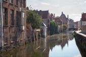 Gandawa - kanał i typowa Cegła domy w świetle poranka