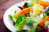 Zdjęcie "Zielona sałatka ze szpinaku, frisee, Rukola, radicchio i granatu nasion na niebieskim tle drewnianych" może być wykorzystywane do celów osobistych i komercyjnych zgodnie z warunkami zakupionej licencji Royalty-free. Obraz jest dostępny do pobrania w jakości wysokiej rozdzielczości do 5760x3840.