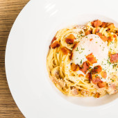 Zdjęcie "Spaghetti carbonara z surowych jaj na górnej" może być wykorzystywane do celów osobistych i komercyjnych zgodnie z warunkami zakupionej licencji Royalty-free. Obraz jest dostępny do pobrania w jakości wysokiej rozdzielczości do 5760x3840.