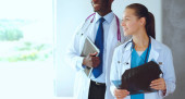 Zdjęcie "Uśmiechnięta lekarka z teczką w mundurze." może być wykorzystywane do celów osobistych i komercyjnych zgodnie z warunkami zakupionej licencji Royalty-free. Obraz jest dostępny do pobrania w jakości wysokiej rozdzielczości do 5760x3840.