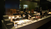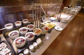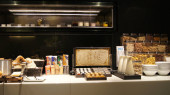 Singapur - 23 lipca 2016: wewnątrz salon o 5 gwiazdkowy luksusowy hotel w Marina Bay, canape wiele i ekskluzywne jedzenie