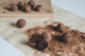 Trufle choco zdrową bez cukru na pergaminie papieru na płycie.
