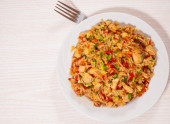 Zdjęcie "pierś z kurczaka z ryżu, warzyw i grzybów" może być wykorzystywane do celów osobistych i komercyjnych zgodnie z warunkami zakupionej licencji Royalty-free. Obraz jest dostępny do pobrania w jakości wysokiej rozdzielczości do 5760x3840.