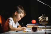 Zdjęcie "dziecko uczy się w nocy" może być wykorzystywane do celów osobistych i komercyjnych zgodnie z warunkami zakupionej licencji Royalty-free. Obraz jest dostępny do pobrania w jakości wysokiej rozdzielczości do 5760x3840.