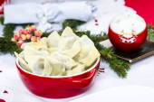 Czerwony barszcz i pierogi (pierogi) na Boże Narodzenie