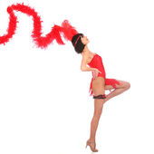 dziewczynka w czerwonej sukience z skrzydła.