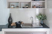 Nowoczesna kuchnia pokój z umywalką na licznik top granit