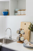 Zdjęcie "Nowoczesna kuchnia pokój z umywalką na licznik top granit" może być wykorzystywane do celów osobistych i komercyjnych zgodnie z warunkami zakupionej licencji Royalty-free. Obraz jest dostępny do pobrania w jakości wysokiej rozdzielczości do 5760x3840.