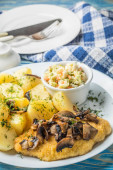 Zdjęcie "Chrupiące ziemniaczane domowe placki z sosem grzybowym." może być wykorzystywane do celów osobistych i komercyjnych zgodnie z warunkami zakupionej licencji Royalty-free. Obraz jest dostępny do pobrania w jakości wysokiej rozdzielczości do 5760x3840.