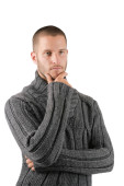 portret przystojny mężczyzna patrząc do góry nogami