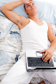 Zdjęcie "zmęczony mężczyzna leży z laptopa" może być wykorzystywane do celów osobistych i komercyjnych zgodnie z warunkami zakupionej licencji Royalty-free. Obraz jest dostępny do pobrania w jakości wysokiej rozdzielczości do 5760x3840.