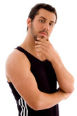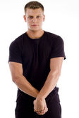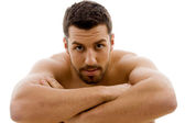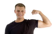 uśmiechnięty mężczyzna młody pokazano jego mięśnie