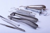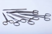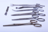 instrumenty chirurgiczne i narzędzi takich jak Skalpele, kleszcze pęseta ułożone na stole do zabiegu