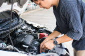 Zdjęcie "człowiek poszukuje pod maską samochodu" może być wykorzystywane do celów osobistych i komercyjnych zgodnie z warunkami zakupionej licencji Royalty-free. Obraz jest dostępny do pobrania w jakości wysokiej rozdzielczości do 5760x3840.