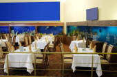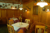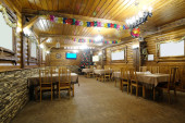 Wnętrze kawiarni w domku drewnianym