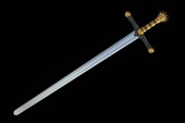 średniowieczny rycerz miecz i hełm 3d ilustracja na białym tle