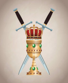 wręczył rycerz średniowieczny miecz i korony ilustracja na białym tle
