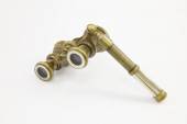 Background with a telescope and a globe of brass on a white back