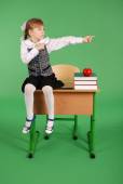 Dziewczyny w szkolny mundurek, podnosząc rękę, aby zadać pytanie