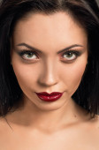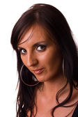 portret brunetka z niebieski oko