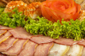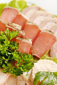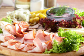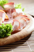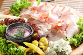 pokrojone mięso na danie drewniany