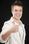 Zdjęcie "facet Wyświetlono kciuki do góry, ręce wyciągnął" może być wykorzystywane do celów osobistych i komercyjnych zgodnie z warunkami zakupionej licencji Royalty-free. Obraz jest dostępny do pobrania w jakości wysokiej rozdzielczości do 5760x3840.