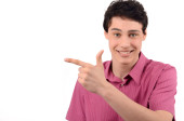 młody, przystojny chłopak w jednolite wskazującą górę