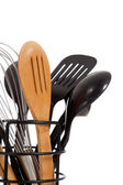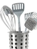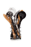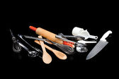 Toczek szefa kuchni z różnych naczynia do gotowania na biały