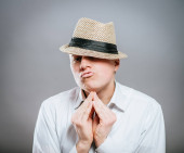 szczęśliwy śmieszne nastolatka z kręcone blond włosy.