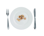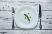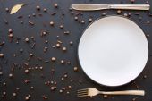 Trochę suszonych soczewica leży na talerzu. Pięknie serwowane tabeli dla osoby, która chce schudnąć. Dieta dla pilnych i szybkie odchudzanie.