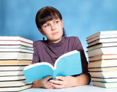 atrakcyjny dziewczynka w żółta koszulka siedzi przy stole i h