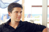 przystojny mężczyzna odpoczynek i sen na kanapie w domu