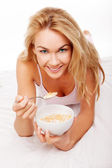 Zdjęcie "kobieta jedzenie zbóż w łóżku" może być wykorzystywane do celów osobistych i komercyjnych zgodnie z warunkami zakupionej licencji Royalty-free. Obraz jest dostępny do pobrania w jakości wysokiej rozdzielczości do 5760x3840.