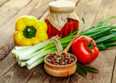 Warzywa na drewno. Zdrowa żywność bio, zioła i przyprawy.