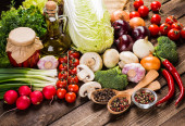 Warzywa na drewno. Zdrowa żywność bio, zioła i przyprawy.