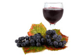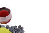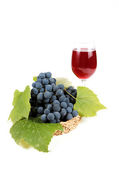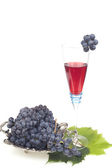 czerwone wino w kieliszkach z winogron na białym tle
