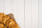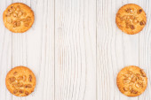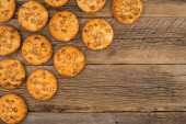 Pliki cookie z orzeszków ziemnych na starym drewnianym stole.