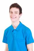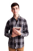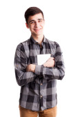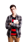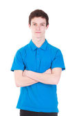 Chłopiec przystojny student w czarnej koszuli i okularach pozowanie