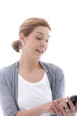Zdjęcie "piękna blondynka trzyma się jej telefon" może być wykorzystywane do celów osobistych i komercyjnych zgodnie z warunkami zakupionej licencji Royalty-free. Obraz jest dostępny do pobrania w jakości wysokiej rozdzielczości do 5760x3840.