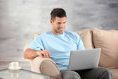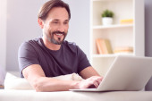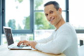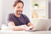 Zdjęcie "Miły młody człowiek za pomocą laptopa" może być wykorzystywane do celów osobistych i komercyjnych zgodnie z warunkami zakupionej licencji Royalty-free. Obraz jest dostępny do pobrania w jakości wysokiej rozdzielczości do 5760x3840.