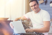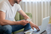 Zdjęcie "Radosny brunetka człowiek posiadający karty kredytowej" może być wykorzystywane do celów osobistych i komercyjnych zgodnie z warunkami zakupionej licencji Royalty-free. Obraz jest dostępny do pobrania w jakości wysokiej rozdzielczości do 5760x3840.
