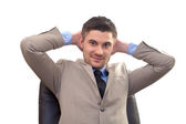 młody biznesmen szczęśliwy patrząc w górę, na białym tle na biały