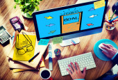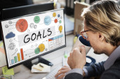Człowiek za pomocą komputera w miejscu pracy tabela