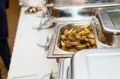 Pyszne gorące pieczony ziemniak w podgrzewacz bankietowe