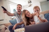 Szczęśliwa rodzina oglądania tv